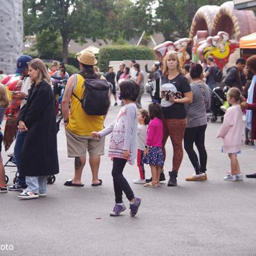 There are a variety of free activities kids can enjoy including a magician, arts & crafts and chalk art (tips to vendors are appreciated.) To use inflatables, the rock wall and play basketball, each child must have a wristband, which is $20 per child. A release waiver must also be filled out for each child.